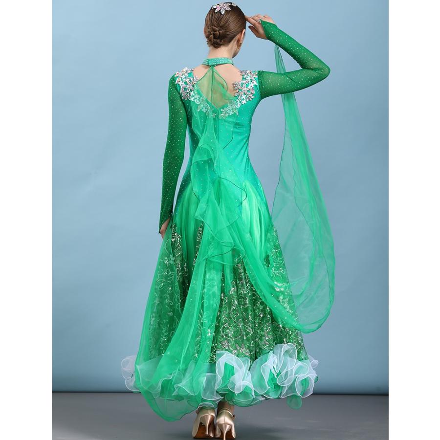 - ダンス・バレエ > 社交ダンス > 【美品 タグ付き日本製 社交ダンス衣装】グリーン SEKINE ワンピース Garuda SHOP 社交ダンス衣装女性モダンドレス 発表会ワルツドレス
